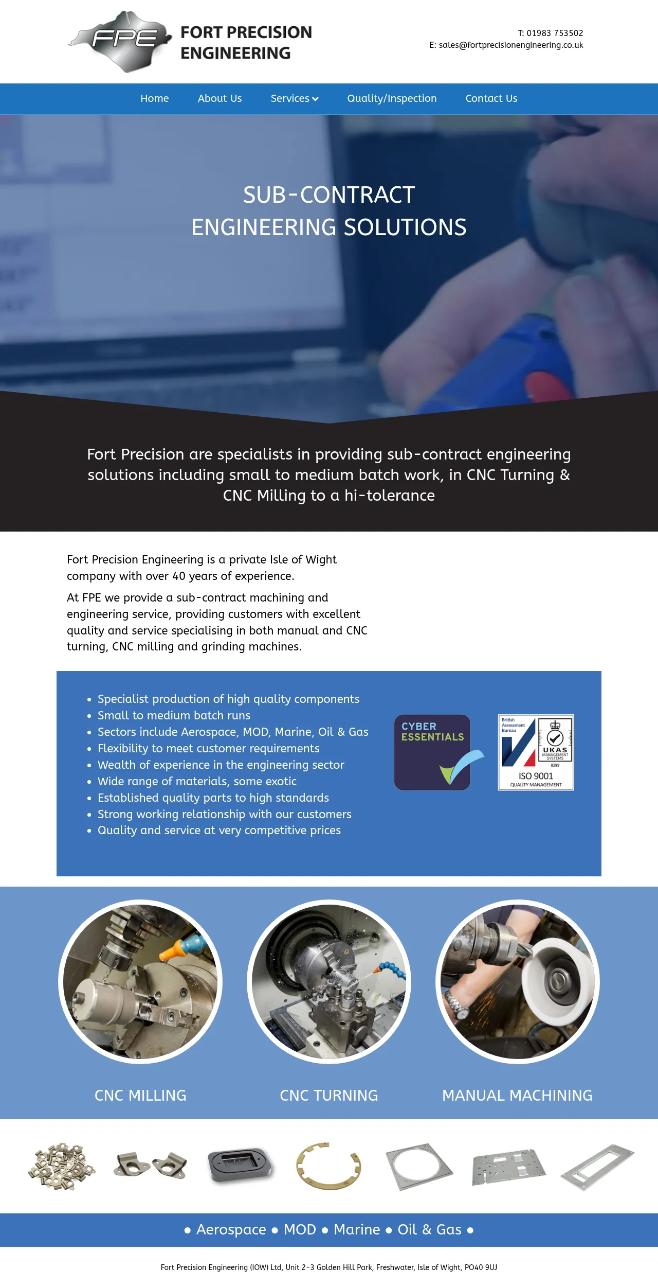 Unit 2-3, Golden Hill Park, Norton Green, Freshwater PO40 9UJ, UK, Newport, England, United Kingdom of Great Britain and Northern Ireland01983 753502sales@fortprecisionengineering.co.ukhttp://fortprecisionengineering.co.uk/