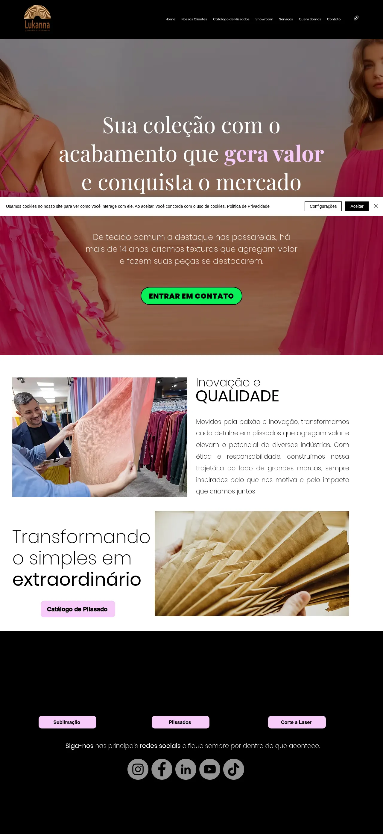 Lukanna Plissados is a textile finishing specialist with over 14 years of experience in high-quality pleating and sublimation services. The company serves the fashion industry by providing precise, industrial-grade pleating techniques including Soleil and custom patterns. Utilizing advanced German-engineered machinery, they offer high-definition sublimation on both rolls and cut pieces. Their facility incorporates sustainable practices, including solar energy usage and rigorous waste management. The firm is recognized for its commitment to technical excellence and precision in apparel manufacturing.