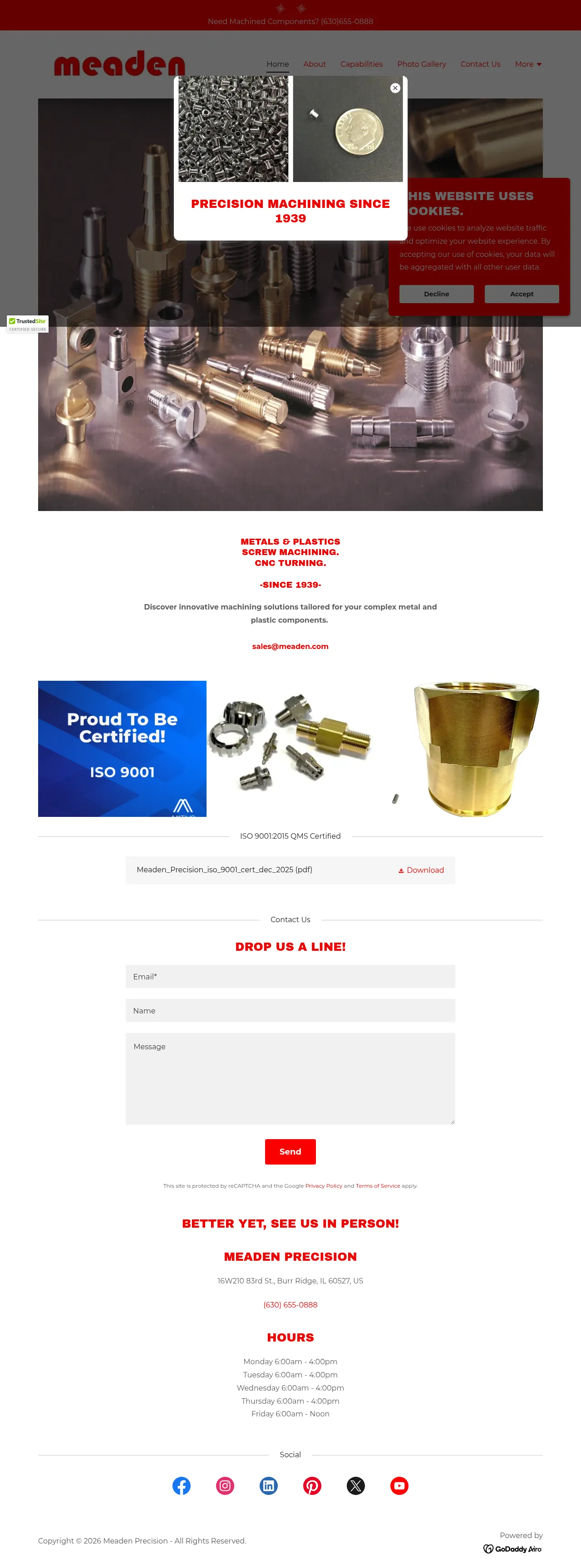 Meaden Precision is a precision machining company specializing in turned components, CNC milling, and assembly work. The company operates extensive screw-machine capacity and offers in-house thread coating and engineering support to assist with design-for-manufacture and cost/quality considerations. Meaden has operated in the precision machining sector since 1939.