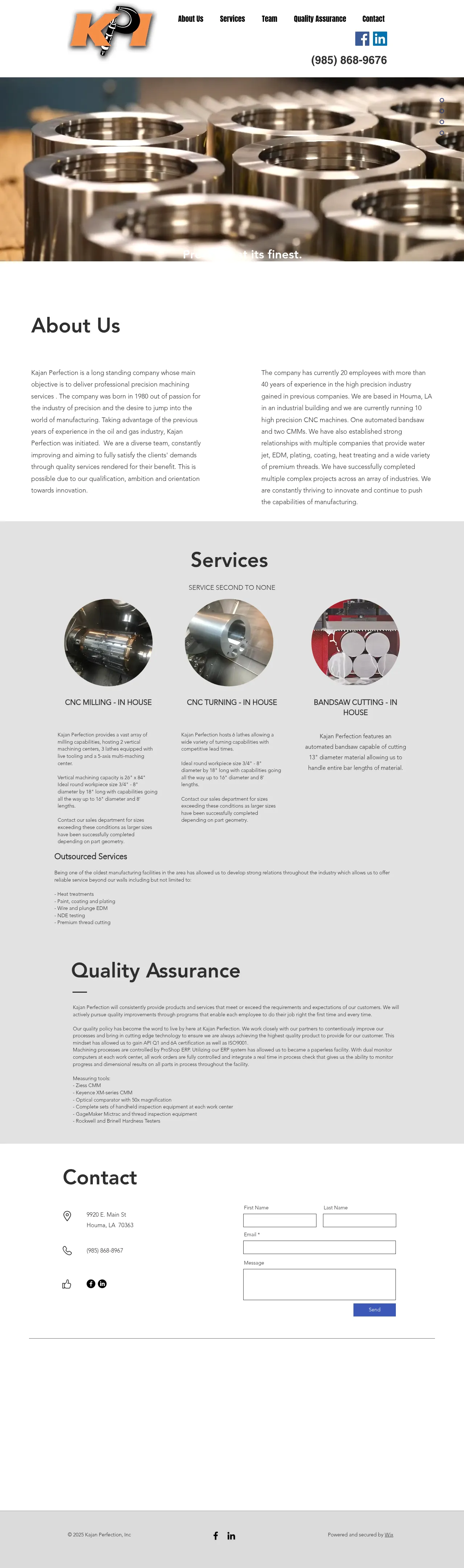 Kajan Perfection is an established manufacturing facility specializing in precision CNC milling and turning services. The company utilizes advanced automated sawing technology and a paperless, ERP-integrated production environment to maintain rigorous quality control standards across all operations. Serving a diverse client base, the machine shop offers comprehensive in-house machining alongside outsourced specialized services such as wire EDM, NDE testing, and various surface finishing treatments. Kajan Perfection maintains a strong focus on continuous process improvement and precision inspection to ensure compliance with stringent industry requirements. Their facility is equipped to handle a wide range of workpiece sizes, from small components to large-scale cylindrical parts.