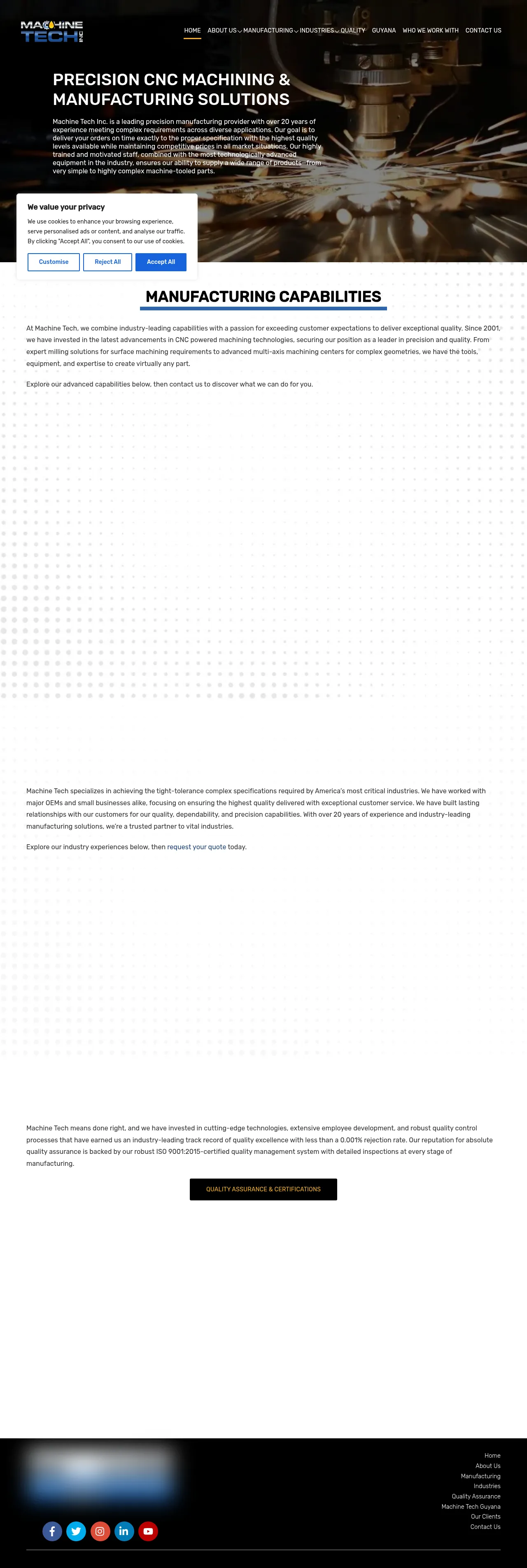 Machine Tech Inc. is a precision manufacturing facility specializing in complex machining for critical applications across the automotive, defense, and industrial sectors. Established in 2001, the company utilizes advanced multi-axis CNC technology to produce components ranging from simple hardware to intricate geometries with tight tolerances. Their service offerings include milling, turning, deep hole drilling, and electrical discharge machining. The organization focuses on high-quality production, on-time delivery, and maintaining rigorous specifications for both small and large-volume orders. They prioritize precision and reliability to serve as a long-term manufacturing partner for original equipment manufacturers and industrial clients.