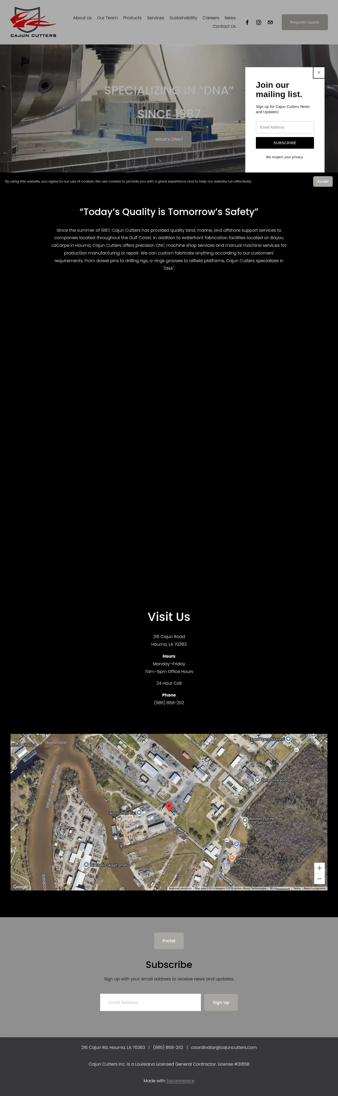 Cajun Cutters is a full-service industrial manufacturing and fabrication company based in Houma, Louisiana, established in 1987. The company specializes in offshore and onsite fabrication, precision machining, specialized coatings, and comprehensive project management. Serving clients in the oil and gas industry, their facility features advanced CNC equipment and deep-water access to accommodate large-scale structural projects. They emphasize safety and quality through a rigorous quality control program and a highly skilled, certified workforce. The company provides 24-hour service to meet critical operational demands for offshore and onsite field projects.