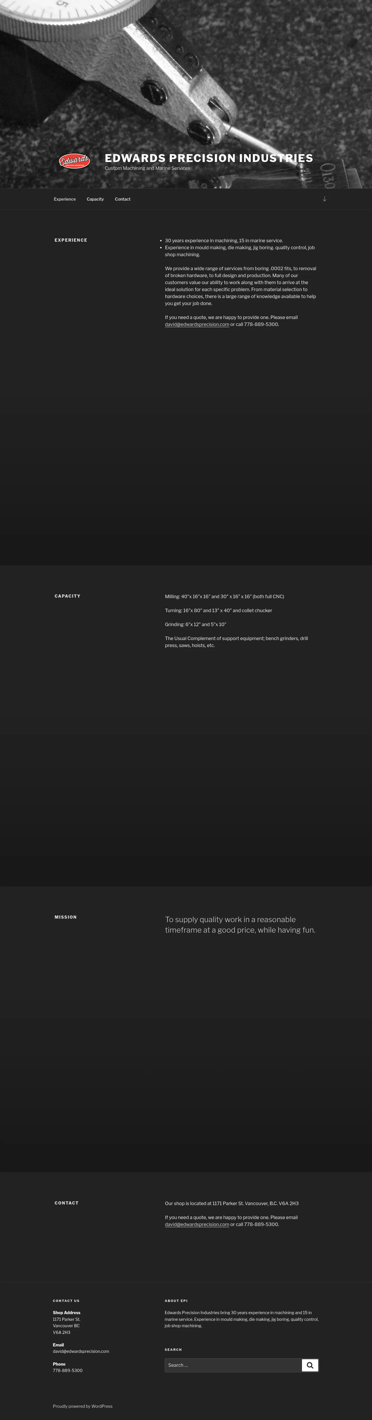 1171 Parker St, Vancouver, BC V6A 3P4, Canada, Vancouver, British Columbia, Canada(778) 889-5300david@edwardsprecision.comhttp://edwardsprecision.com/