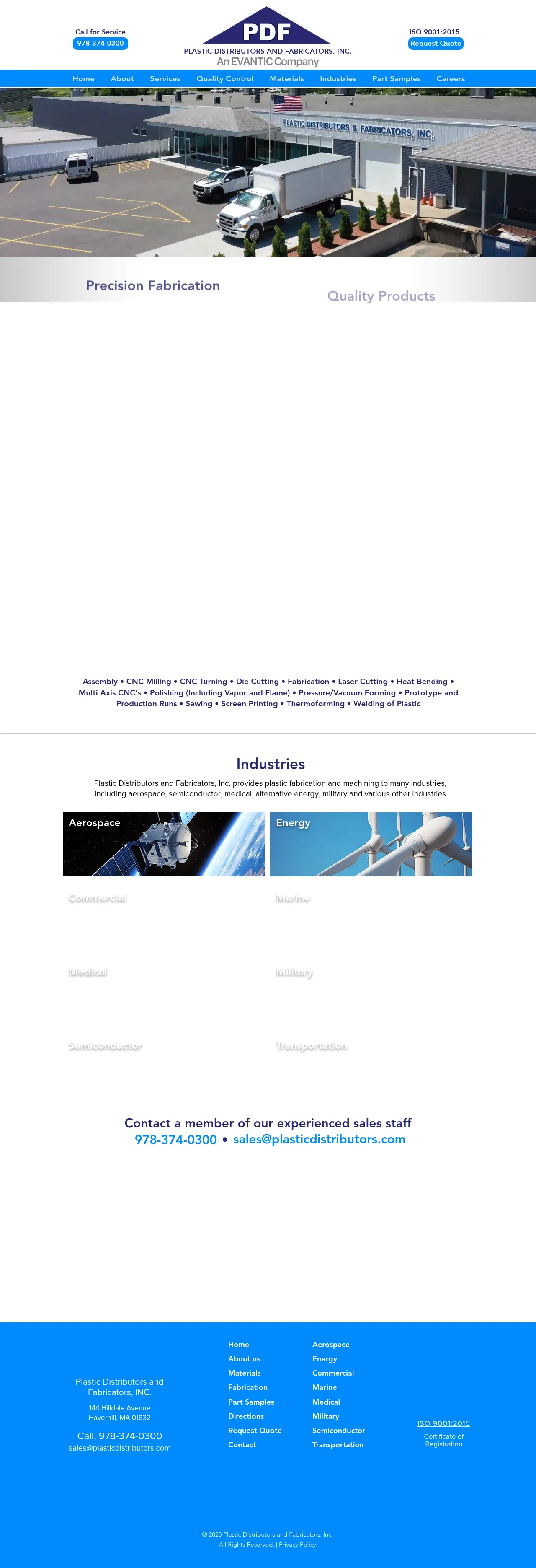 Established in 1974, Plastic Distributors and Fabricators, Inc. specializes in high-precision plastic fabrication and machining services. The company serves a diverse range of sectors, including the aerospace, medical, semiconductor, military, and alternative energy industries. Their technical capabilities include CNC milling, CNC turning, thermoforming, 3D printing, and die cutting. With a dedicated quality assurance team and state-of-the-art inspection equipment, the firm maintains strict compliance with ISO 9001:2015 standards. They are committed to delivering custom components manufactured to precise specifications for international clients.