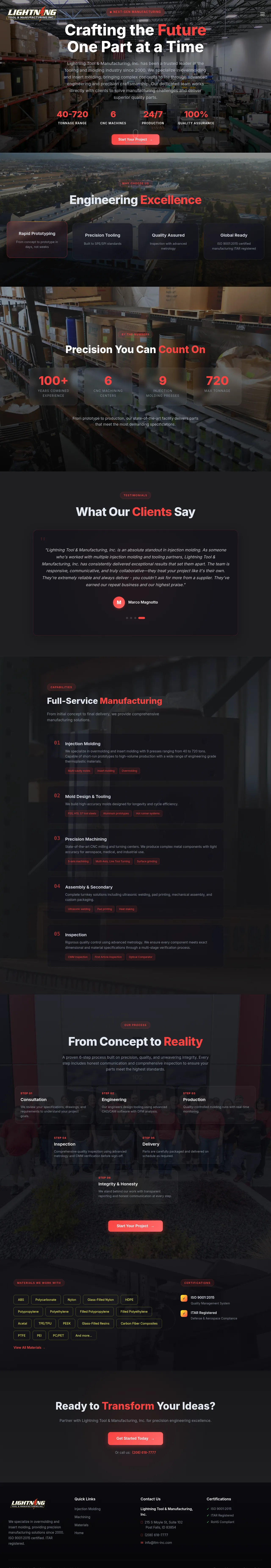 LTM Inc. is a precision manufacturing company specializing in injection molding, CNC machining, and comprehensive assembly services. The company provides end-to-end solutions ranging from initial design consultation and rapid prototyping to high-volume production. Their facility is equipped for multi-axis milling and turning to handle complex geometries for clients in the aerospace, medical, and industrial sectors. With a focus on quality assurance, they utilize advanced metrology, including CMM inspection, to verify all components against strict technical specifications. LTM Inc. maintains an ISO 9001:2015 certified and ITAR registered environment to support demanding manufacturing requirements.