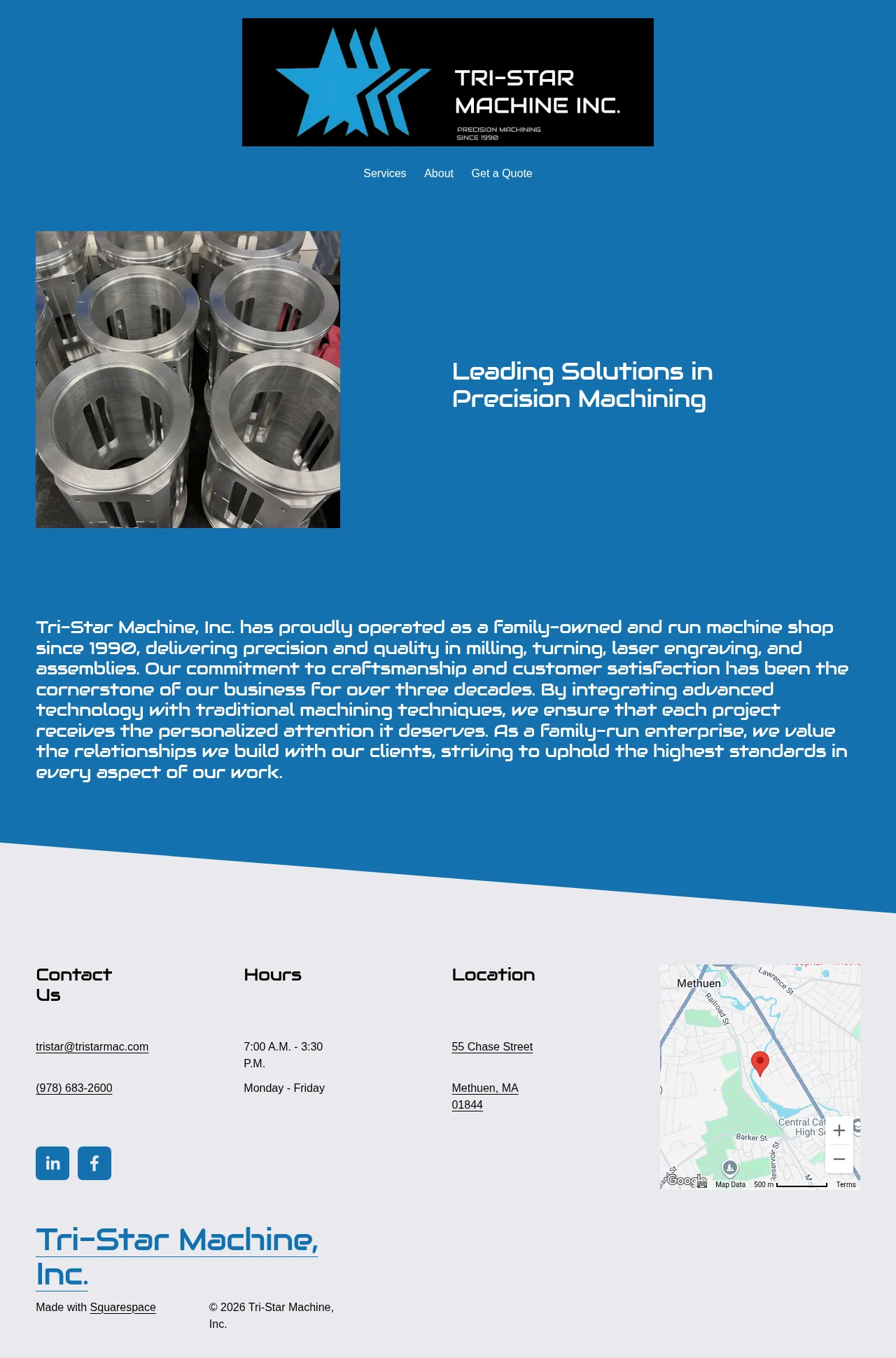 Tri-Star Machine, Inc. is a family-owned machine shop based in Methuen, Massachusetts, providing precision manufacturing services since 1990. The company specializes in milling, turning, laser engraving, and component assembly for sectors including electronics, medical, biotech, semiconductor, telecommunications, and aerospace. Utilizing a 9,000-square-foot facility, they support projects ranging from individual prototypes to full-scale production runs. The company integrates traditional machining techniques with advanced technology to ensure high-accuracy components and consistent quality control. They emphasize rapid turnaround times and maintain a versatile production environment capable of processing various metals and plastics.