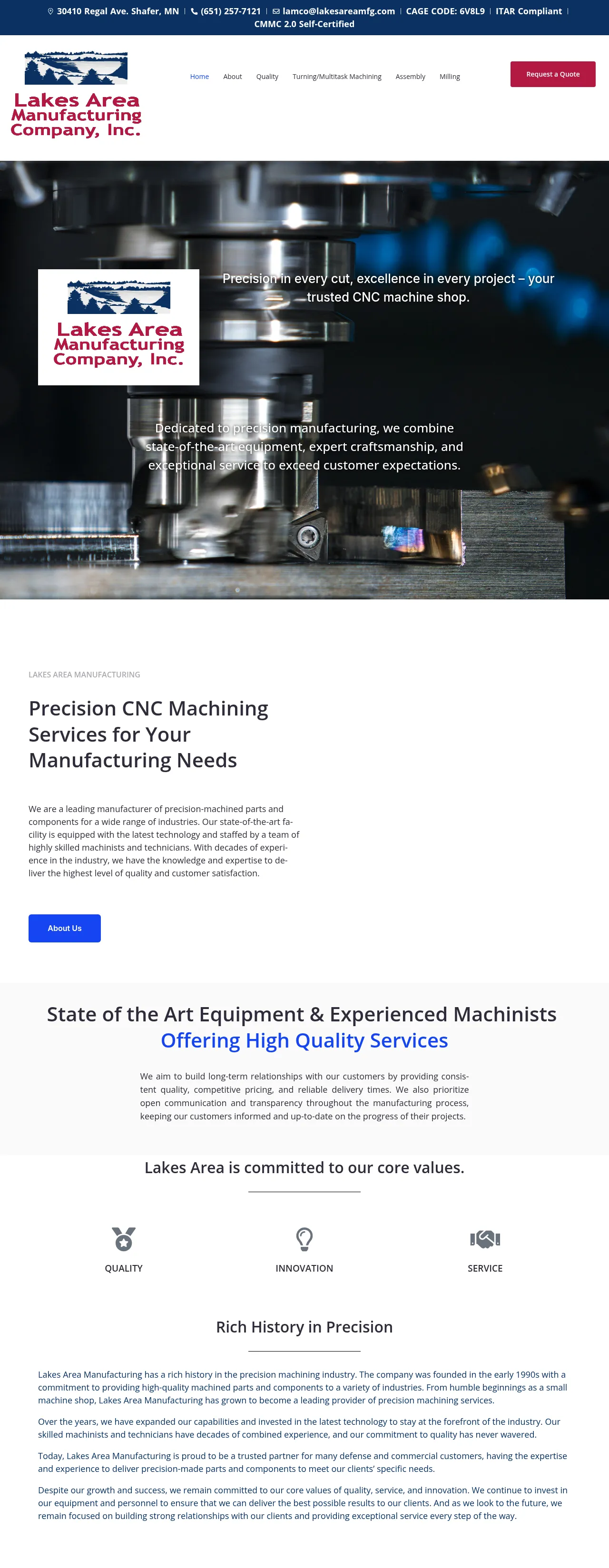 Lakes Area Manufacturing is a precision machining company founded in the early 1990s that provides high-quality components for defense and commercial industries. The company specializes in multi-task machining, 5-axis milling, and automated turning processes to support prototyping, short-run, and high-volume production needs. Their facility is equipped with advanced technology and inspection systems to ensure strict adherence to technical specifications. Dedicated to consistency and traceability, they maintain a focus on long-term client relationships and high-precision workmanship. The company is locally owned and operated, emphasizing reliability and on-time delivery across all manufacturing operations.