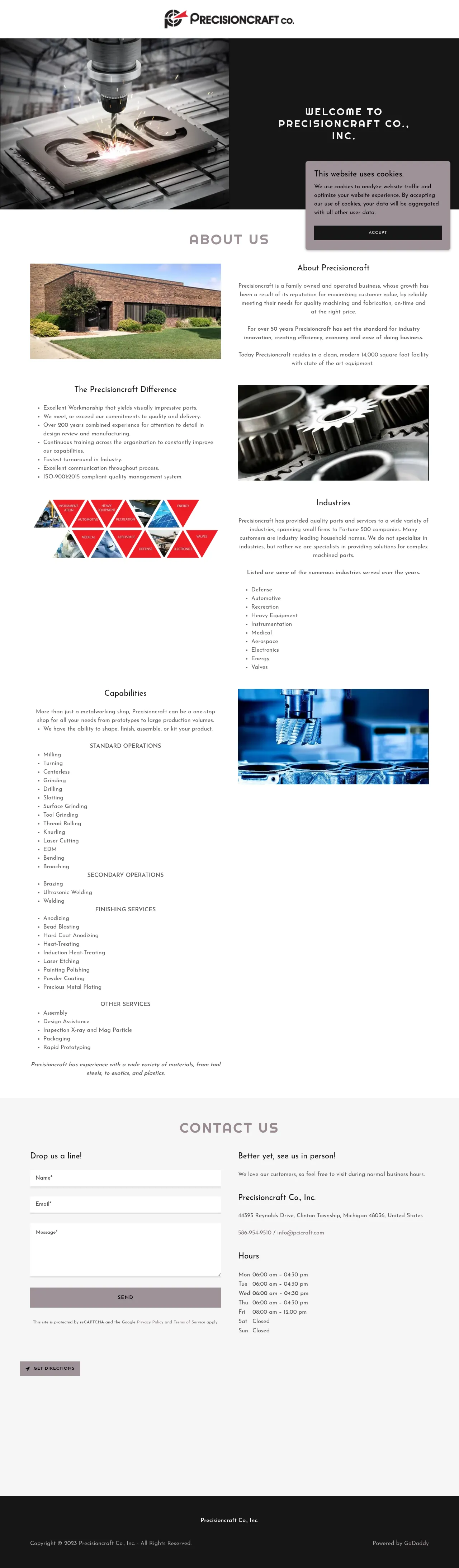 Precisioncraft Co., Inc. is a family-owned and operated manufacturing facility with over 50 years of experience in machining and fabrication. The company provides specialized solutions for complex parts, ranging from prototypes to high-volume production for industries including aerospace, medical, defense, and automotive. Their comprehensive service offerings encompass precision machining, assembly, kitting, and various secondary finishing processes. Precisioncraft is known for its commitment to quality, fast turnaround times, and technical expertise across a diverse range of materials. They operate under a quality management system focused on continuous improvement and customer satisfaction.