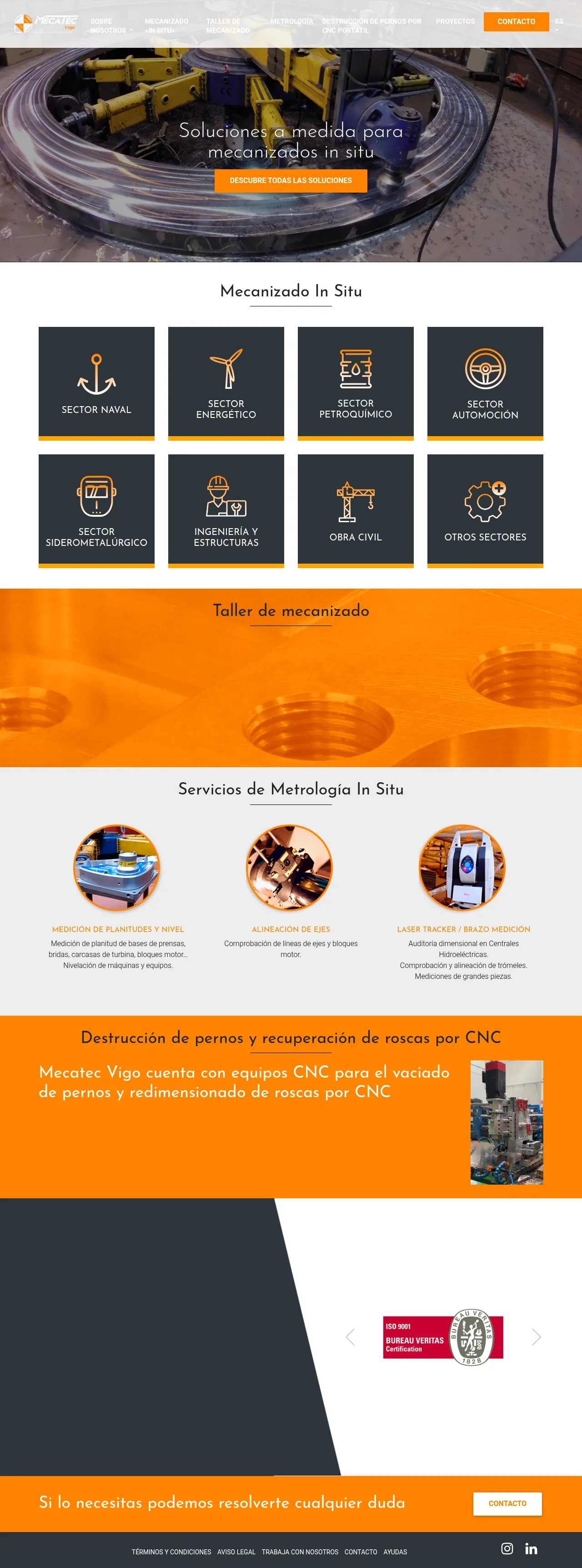 MECATEC VIGO is a specialist in in-situ machining and grinding for industrial machinery. The company delivers on-site milling, turning, honing and metrology services, together with dimensional audits for large components and installations. It also operates a machine shop for single parts and short production runs and provides portable CNC solutions for bolt removal and thread recovery. MECATEC VIGO states a formal quality policy and a commitment to meeting client requirements and continuous improvement.