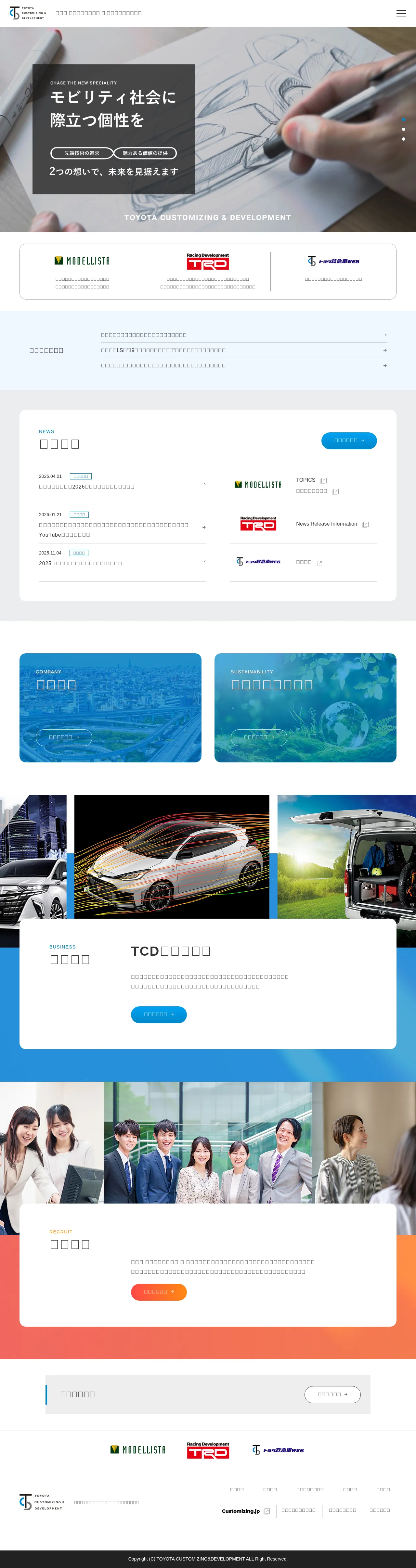 Toyota Customizing & Development is a premier automotive brand specializing in the design and manufacture of high-performance tuning and customization components. The company enhances vehicle aerodynamics and handling while offering distinct sporty aesthetic upgrades. Beyond consumer aftermarket parts, they provide specialized vehicle conversions and manufacturing for high-specification emergency response vehicles, such as ambulances. With a forward-looking approach to the future of mobility, the firm integrates advanced customization into various vehicle platforms. Their operations are dedicated to delivering global value and sustainable corporate growth through innovative automotive engineering and equipment modification.