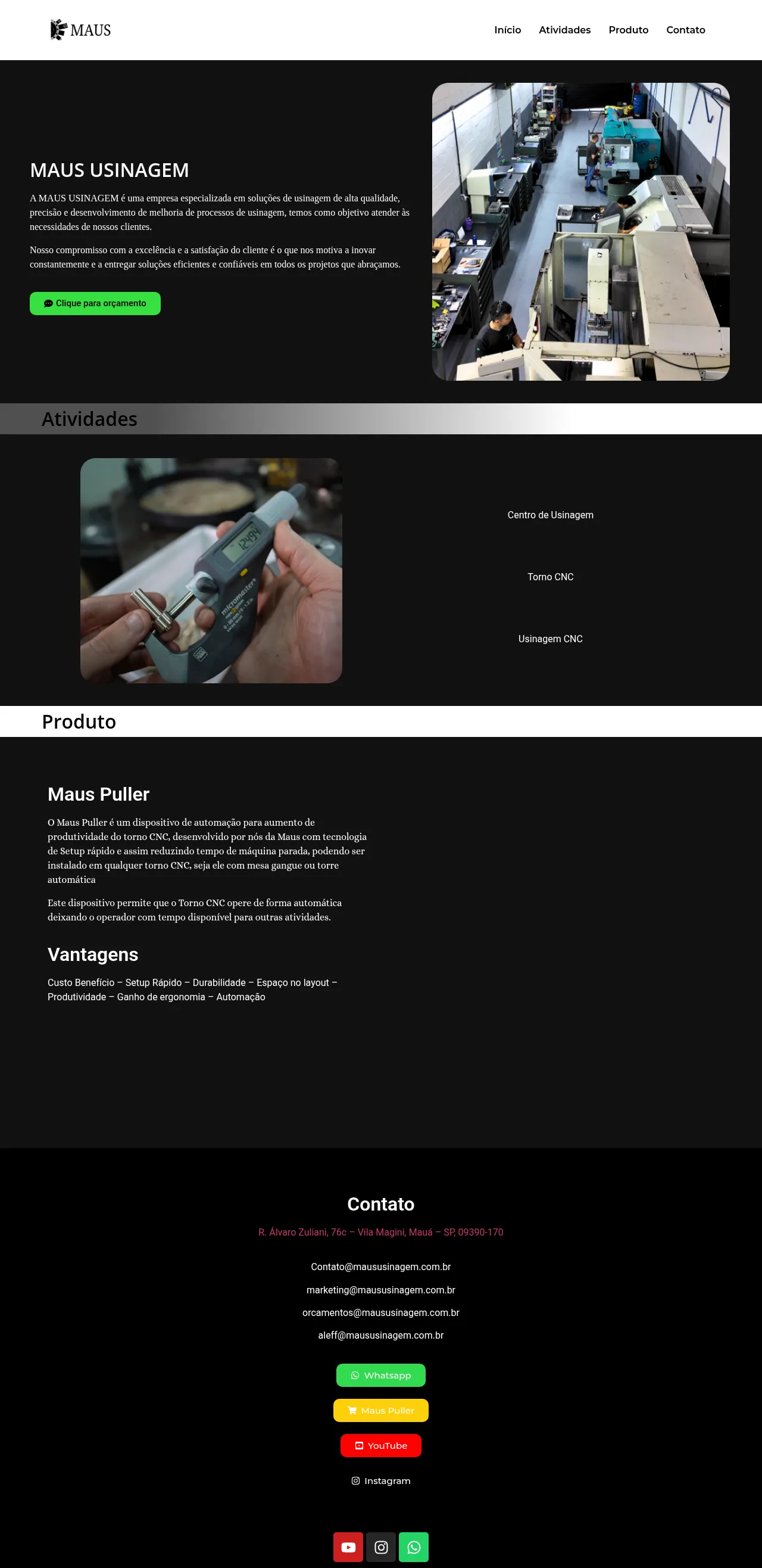 Maus Usinagem is a precision manufacturing company providing high-quality machining solutions and process development. The company specializes in CNC turning, milling, and advanced machining services designed to meet rigorous industrial standards. They have developed the proprietary Maus Puller, an automation device engineered to increase CNC lathe productivity through rapid setup times and reduced idle periods. The firm focuses on optimizing manufacturing layouts, improving worker ergonomics, and delivering reliable, efficient production outcomes. Maus Usinagem serves various industrial sectors by integrating automated technologies to streamline custom machining projects.