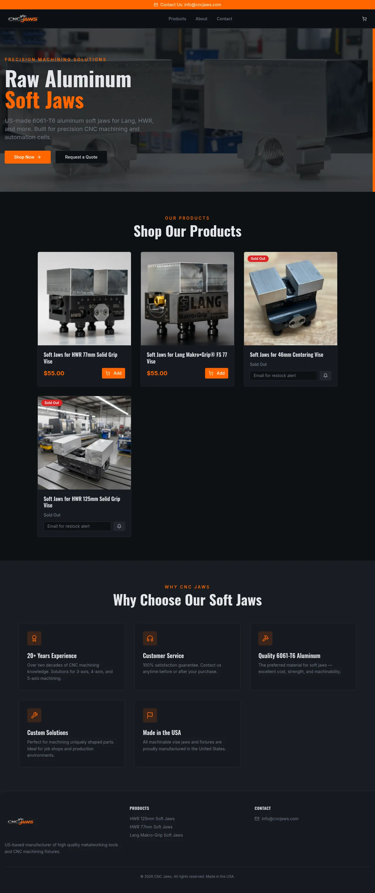 CNC Jaws is a United States-based manufacturer specializing in high-quality metalworking tools and precision CNC machining fixtures. With over two decades of industry experience, the company produces durable soft jaws compatible with major vise systems including Lang and HWR. Their products are designed to support complex 3-axis, 4-axis, and 5-axis machining operations, catering specifically to job shops and high-volume production environments. All fixtures are manufactured domestically using high-grade 6061-T6 aluminum to ensure optimal strength and machinability for uniquely shaped parts.