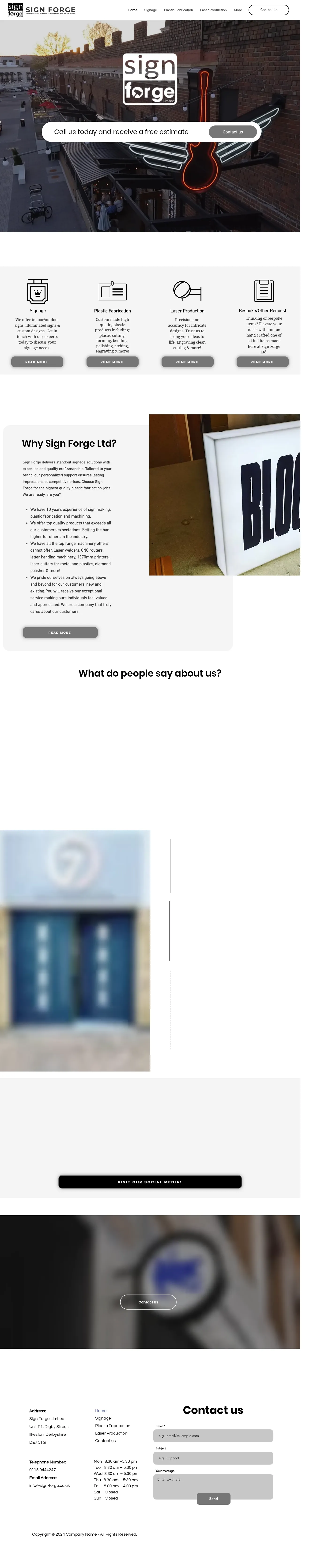 Sign Forge Limited is a custom manufacturing specialist based in Ilkeston, Derbyshire, with over a decade of experience in the industry. The company focuses on the design and production of bespoke signage solutions, including metal and LED-based systems. Beyond signage, they provide specialized plastic fabrication services tailored to meet individual project requirements. The business emphasizes a customer-centric approach, supporting clients from the initial conceptual stage through to final production. By combining artisanal craftsmanship with modern manufacturing techniques, they deliver tailored products designed for high-quality outcomes.