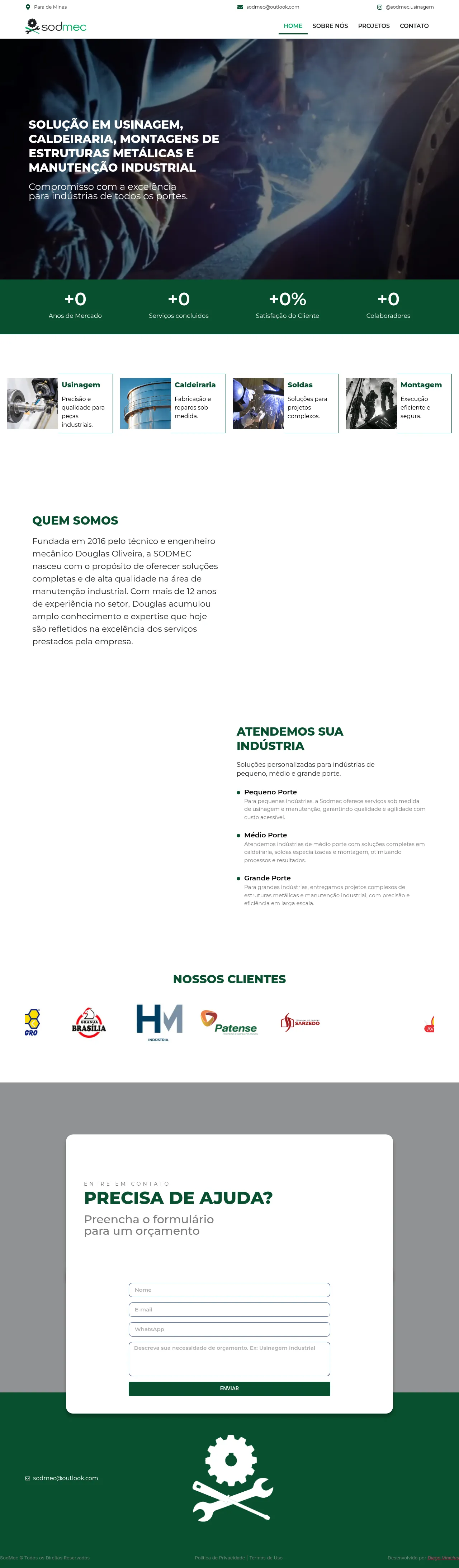Sodmec is a Brazilian industrial services provider specializing in machining, boiler making, and industrial maintenance. Founded in 2016, the company serves a broad client base ranging from small-scale local businesses to large-scale industrial operations. Their core capabilities include precision machining, metal structure assembly, and specialized welding services for critical components. The company provides both in-house fabrication at its Pará de Minas facility and on-site field support to ensure operational efficiency. They emphasize adherence to technical standards, safety protocols, and customized project management from planning through to post-delivery support.