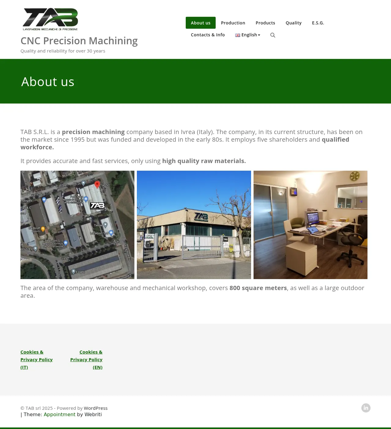 TAB S.r.l. is an Italian precision mechanical engineering firm with over 30 years of experience in the production of complex components. The company provides a comprehensive range of machining services, including CNC turning and milling, for a diverse portfolio of metal and plastic parts. Their manufacturing process is supported by strict quality controls and the use of precise electronic and mechanical measurement instrumentation. TAB S.r.l. specializes in producing components such as pins, flanges, shafts, screws, and gears, catering to various industrial requirements. The company is committed to continuous process improvement and maintains a certified quality management system to ensure adherence to customer specifications.