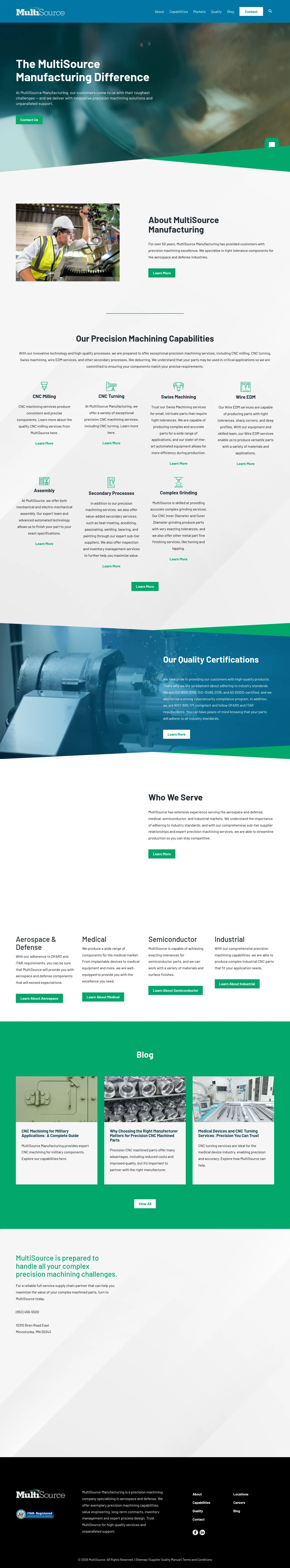 MultiSource Manufacturing is a precision machining company providing services to the aerospace, defense, medical, semiconductor, and industrial markets. The company specializes in complex CNC milling, turning, Swiss machining, and wire EDM, supported by in-house mechanical and electromechanical assembly. With over 50 years of experience, it operates multiple facilities across the United States. MultiSource offers full-service supply chain management, including secondary processes like heat treating and finishing through vetted sub-tier suppliers. The company maintains strict compliance with aerospace and defense standards, ensuring precision for critical applications.