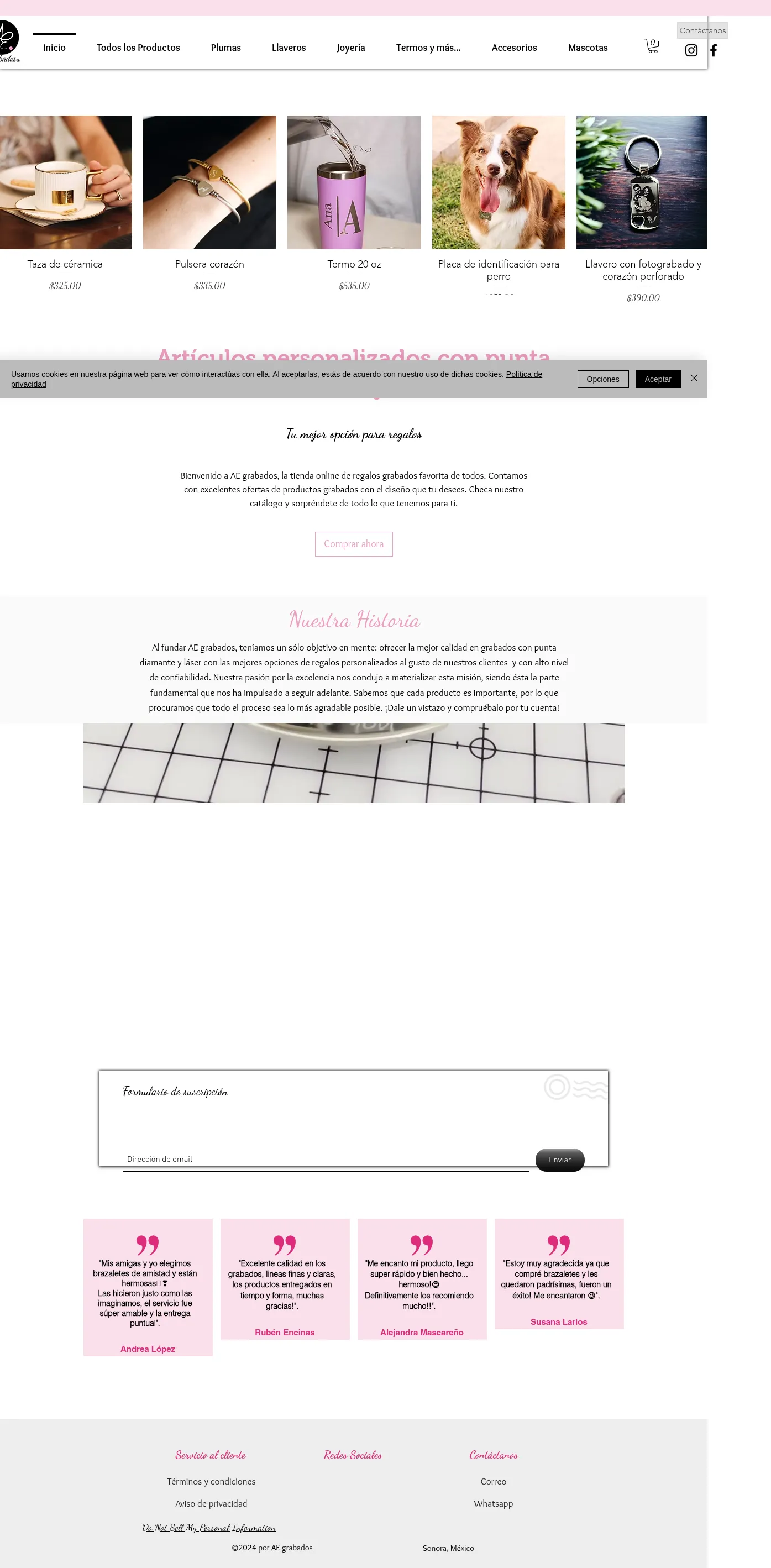 The company produces custom engraved items using diamond-tip and laser engraving techniques. It focuses on personalized gifts for individual and corporate customers. Operations are based in Ciudad Obregón, Sonora.