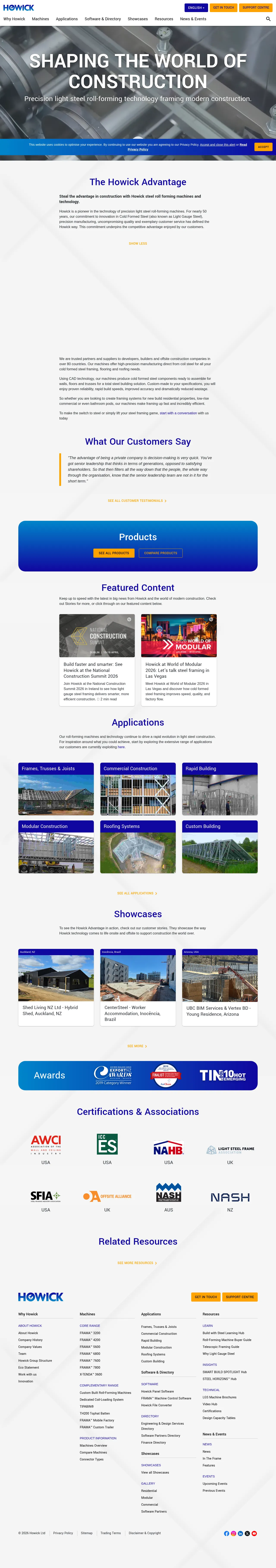Howick Ltd specializes in the design and manufacture of high-precision roll-forming machines for the light gauge steel construction industry. With nearly five decades of experience, the company provides automated solutions for producing steel framing, flooring, trusses, and roofing components directly from coil steel. Their technology serves a wide array of sectors, including residential, commercial, and modular construction, enabling faster build speeds and reduced material waste through advanced CAD integration. The company supports a global client base by delivering reliable, custom-engineered equipment designed for both onsite and factory environments. Their approach emphasizes innovation, precision manufacturing, and long-term customer partnerships.
